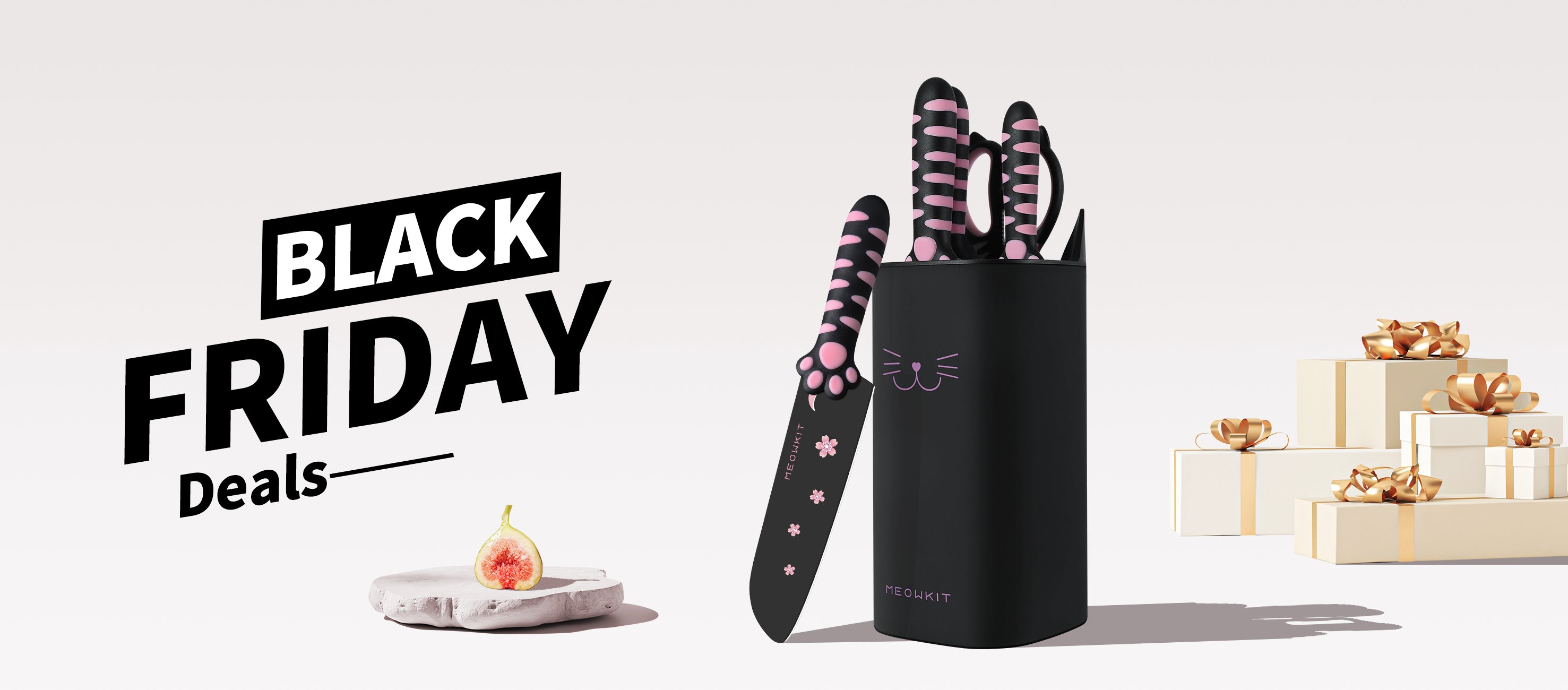 Meowkit 5 PCS Kitchen Knife Set – Pink & Black Cooking Blades with Storage Block, Cute & Modern Kitchen Essential